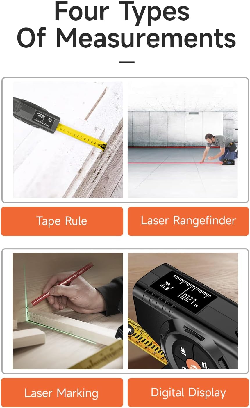 ✔️ 4-in-1 Functionality: Combines laser marking, digital display, multifunction modes, and classic tape in one smart tool