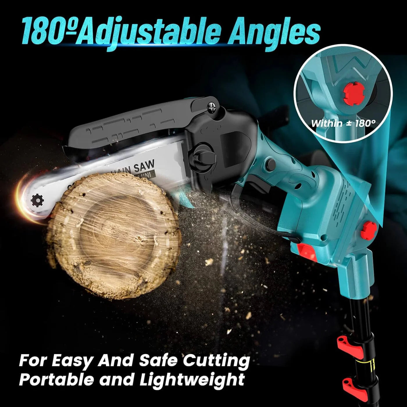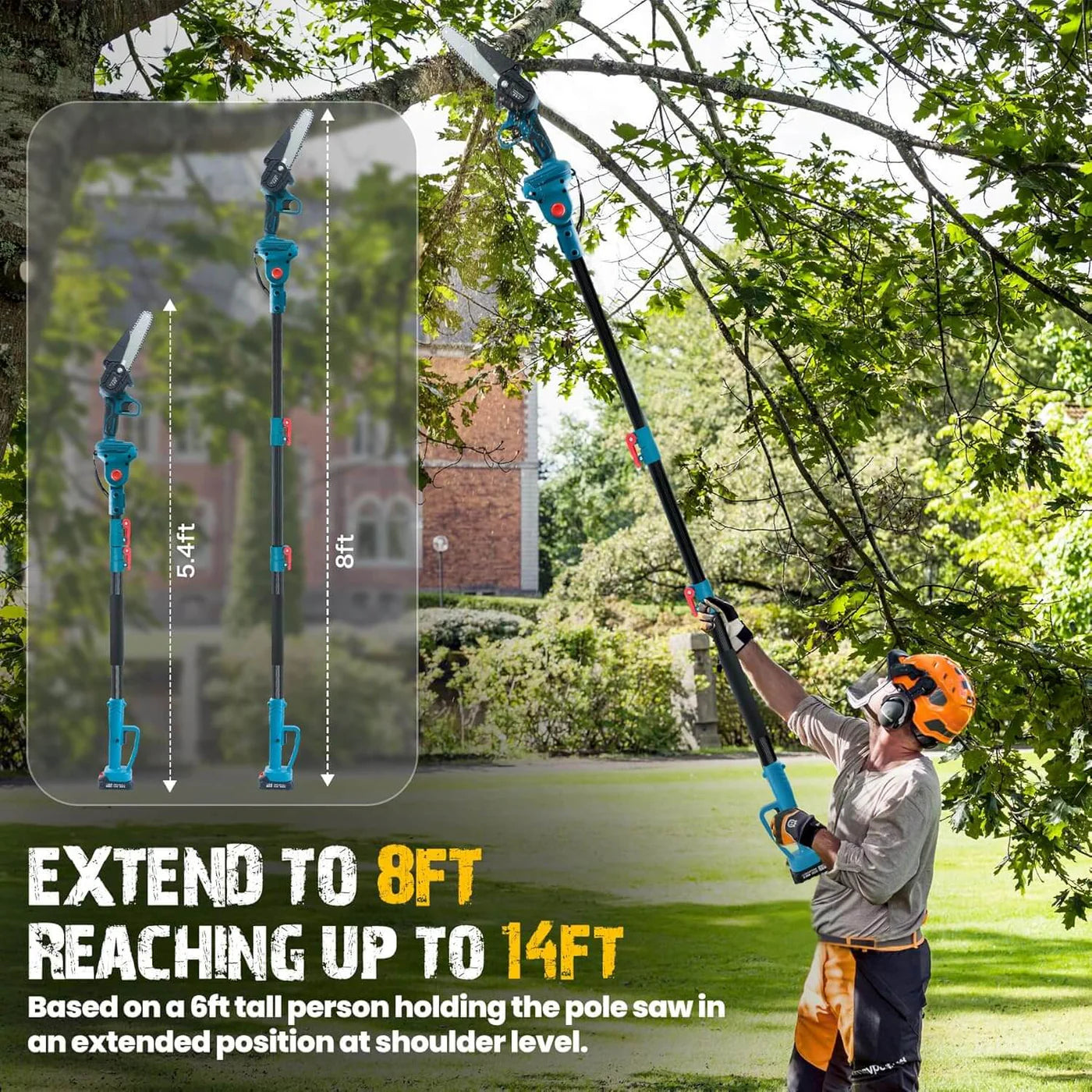 iTooTech 2-in-1 chainsaw comes with a 4-section extension pole, the Telescoping pole extends from 5.4 ft to 8 ft(1.5-2.5m), making it easy to access tall trees and hard-to-reach branches without a ladder, improving your safety and efficiency.